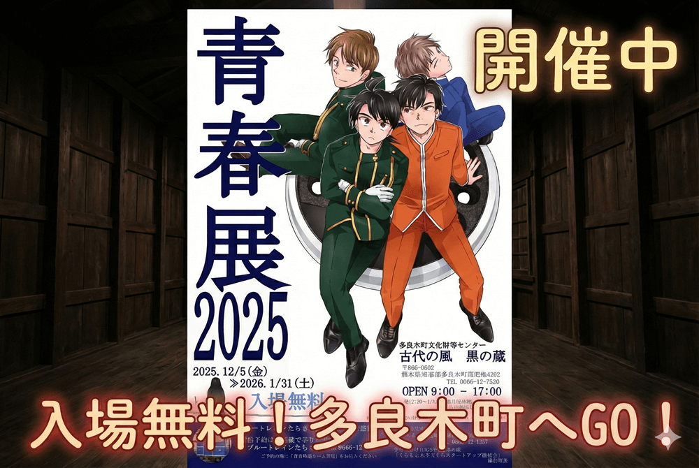 寒さが染みるこの季節ですが、今年も毎年恒例の大人気イベント「青春展2025」が、熊本県多良木町で開催されます!