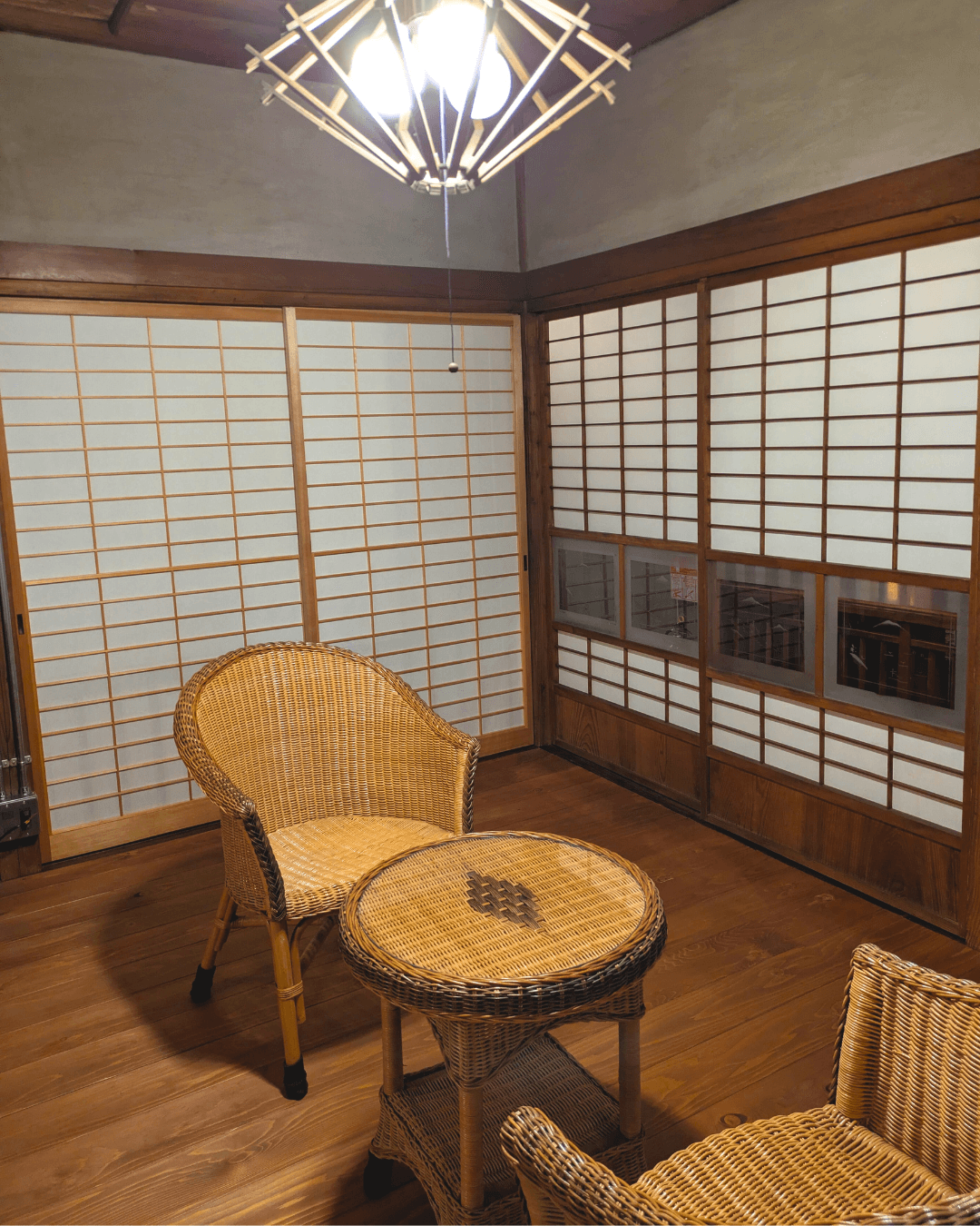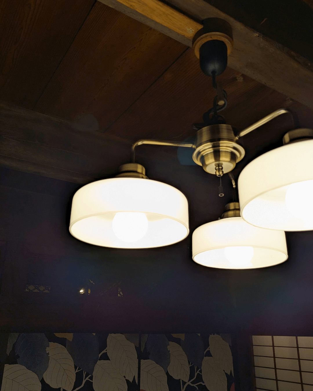 築年数を重ねた古民家をリノベーションしており、太い梁(はり)や木のぬくもりを感じる落ち着いた雰囲気。単に古いだけでなく、センスの良い家具や照明が配置された、レトロで上品な空間です。