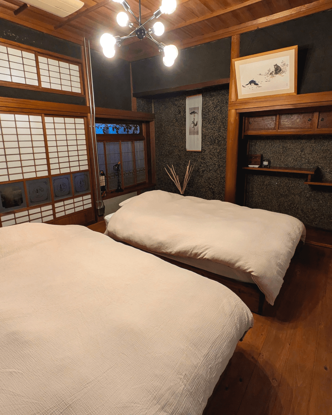 古民家の構造を活かしつつ、快適に過ごせるようリノベーションされており、まるでデザイナーズホテルのよう。